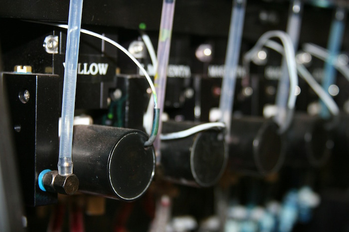 Entre los colores de tinta de los cartuchos se encuentran el negro, cian, amarillo y magenta como principales, hay impresoras que utilizan otros colores como el negro foto, cian claro, magenta claro, rojo, azul, verde, gris claro, gris oscuro entre otros. Todo depende del modelo de máquina. Los cartuchos también pueden reciclarse lo que supone un menor impacto en el medio ambiente ya que la tinta es un material bastante contaminante.