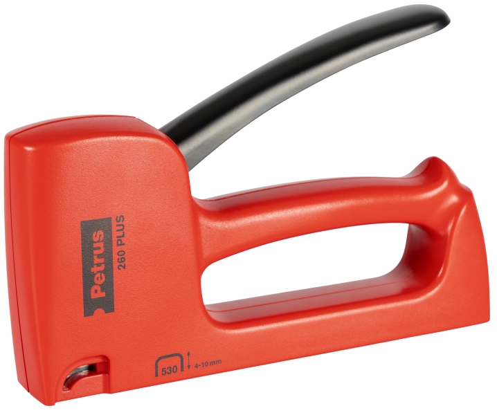 Petrus 260 Plus Clavadora/Grapadora - Para Grapas 530/4-10mm - Carga Posterior - Sistema de Bloqueo de Palanca - Color Rojo
